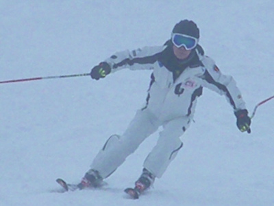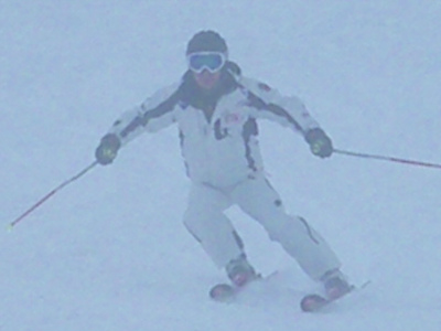 過去の滑りはもう捨てましょう。力強くアグレッシブな滑りを見てください。遠心力がスキーにかかる素晴らしいフォームになりました。グッドジョブ!