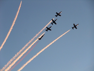 写真は、少しでも爽快感を味わって頂くために、青空の航空ショーです。