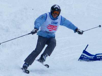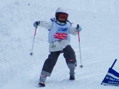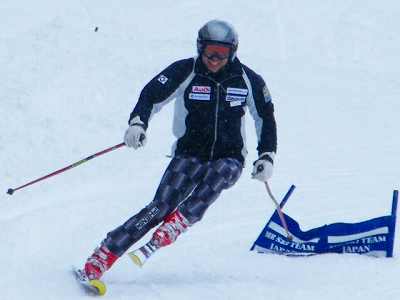 チェックポイント □乗るポジションは? □上体はつぶれている? □内スキーが空中でジャベリン型(ハの字)か? □腰が回っているか? □腕のポジションは? □右外膝の内傾角は?(エッヂ角が分かります)