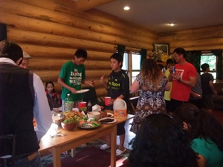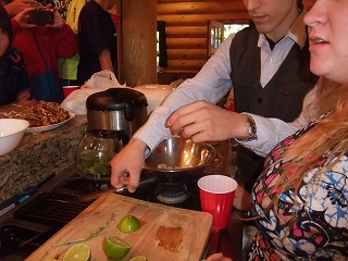 ソチ・オリンピック迄ロシアのコーチをしている「ロイと家族」を始めとして、沢山のゲストが来てくれました。生きた英会話を、自然の中でできた寿司パーティーは、最高です。日本酒も久しぶりに沢山飲めて、これも又最高でした。準備をしてくれた全員の選手。沢山の美味しい料理を作ってくれた眞理子さん。ありがとう!