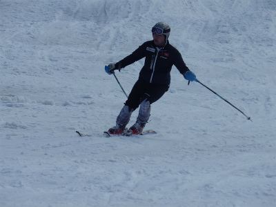 雪が少なかった日本での練習不足を、30度の一枚バーンにて、GSL30双旗 SL60双旗!