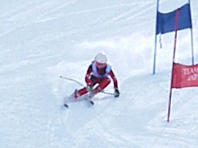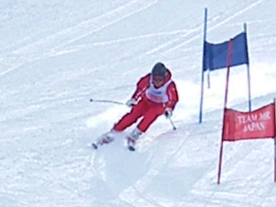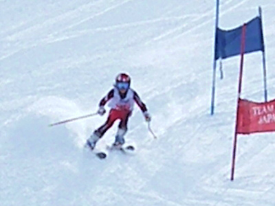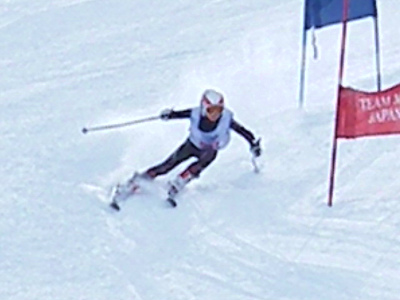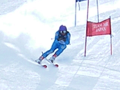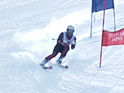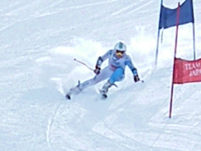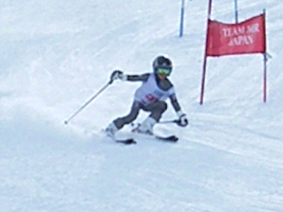 写真は今日の滑りの選手です。スピードを追求するためには基本はクローチング姿勢です。如何に空気抵抗が少ない姿勢に近づけるか、瞬時でもそれを追求しましょう。