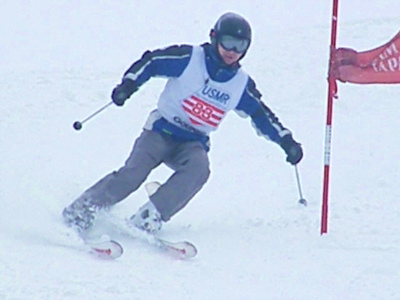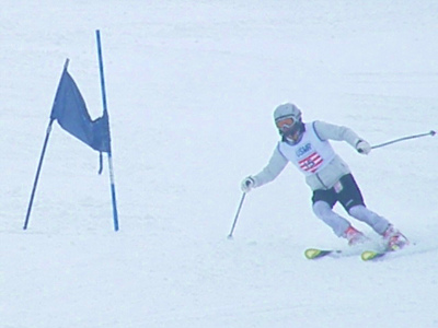 グライダーターンは身体の投げ出しやポールの近くを通る為に自然におこります。しかし、ポールブレイクする瞬間はふところを深くして絞って逃げるようにしましょう。イメージトレーニングとお座スキーでそのフォームを直ぐとれるようにしましょう。