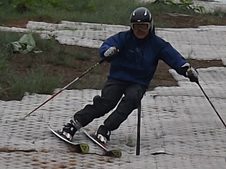 内倒のクセが、もろ出てしまうトランポリン練習で、内倒のクセを直しています。しっかり足首をブロックして、ヒップローテーションをしないでの、捻りも出来るようになっています。その為、スキーのフォームが力強く、素晴らしいフォームになってきました。益々、速くなる事間違いありません。