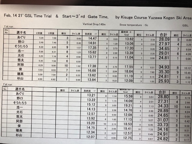 2,二本目のタイムを見て下さい。 そして、どこを直したらもっと速くなるか?そして、完走できるかを考えましょう。完走出来なかったのは、右ターンで横ずれして板がたわみ、ご開放したからです。技術が未熟の為ではなく、それだけパワーがかかり、板がたわんだ結果です。