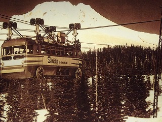 1930年にアメリカの不況を改善するために、数万人以上の雇用を生み出し、作った歴史的な木造高層建造物としても、有名です。環境問題があるので、他の高い山には雪が残っているのに、リフトがありません。全米で唯一、サマースキーが出来るのは、ここ、ティンバーラインです。それは、ガバメントが作ったからですね。感謝!感謝!