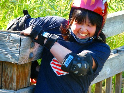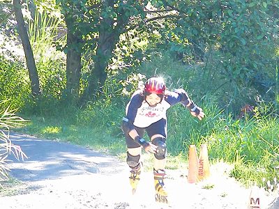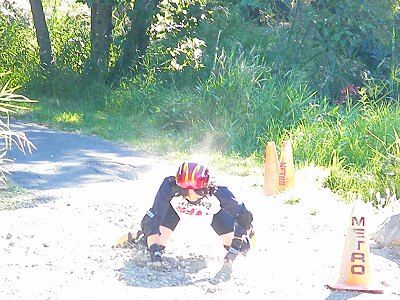 橋の欄干はこのようにも使うんですね。ブルーレイクのインラインスケート駅伝にて、必死の形相でつかんだ為、USMRレーシングTシャツは ボロボロ、脇はすりむくし 痛いの 痛くないの って… 痛いんだってバ!