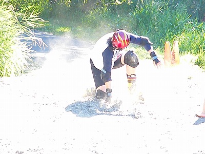 インライン駅伝では、ゆかコーチの励ましが心強かったです。最後まで砂利を克服できなかったことが悔しい・・・