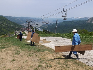 持ち物…短いスキー・ブーツ・ストック(SLガードがあれば着いている方が良い)・運動靴・タオルと着替え・水・長袖・ヘルメット