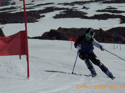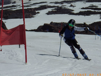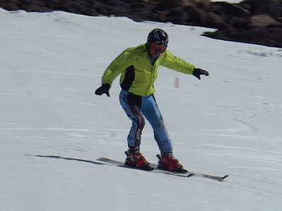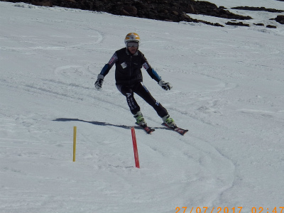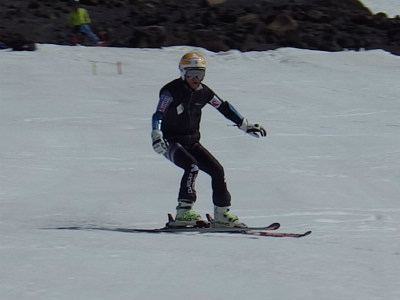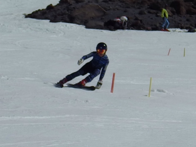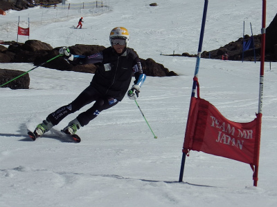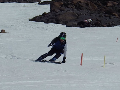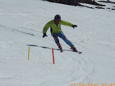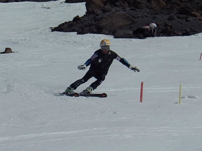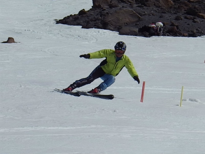 昨日は氷点下になり、固くしまったバーンでの練習は最高です! 最初は、ショートポールを使っての、内傾角を倒す練習をしました。骨盤が寝ると内倒して転倒しますので、基本に忠実に内骨盤を上げられるようになります。