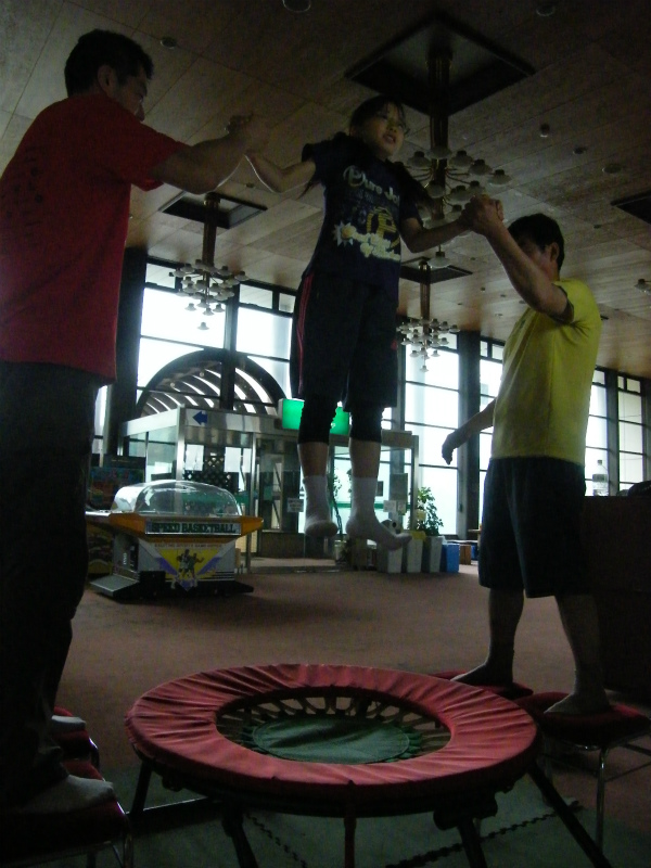 膝を曲げてジャンプしても飛べないトランポリンで膝の絞りを学んでいます