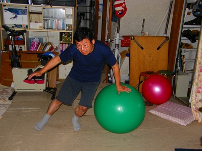 下…ボールの反発で立つ練習ですが、いつもの欠点が出てしまいます。