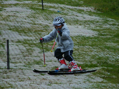 右は小学校三年生の雄◎選手です。最初はヒップローテーションの為、お尻がクルクル回り、テールがずれている滑りでした。その初日の写真です。明日は、翌日の写真を載せたいと思います。色々なトレーニングでヒップローテーションを修正出来たかどうか お楽しみに…