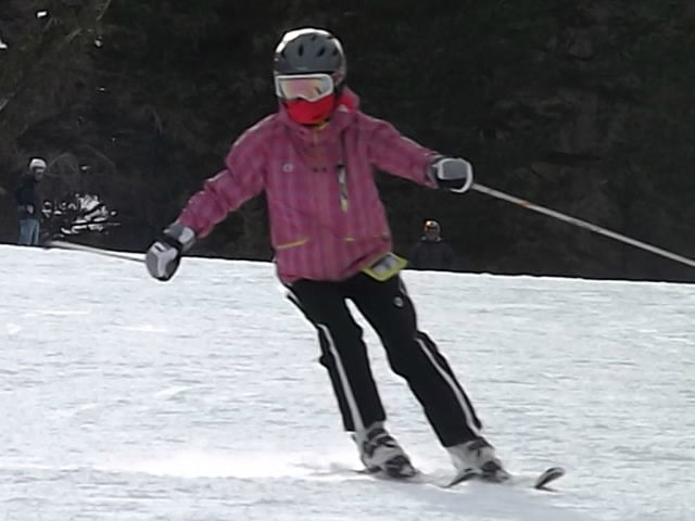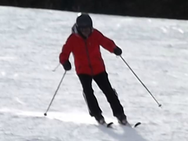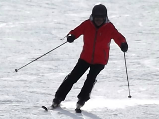 雪質は固いのですが、エッヂがかかる最高のコンディションです。ベースで2400mあるので、空気は薄いが… アッ!禁句を言ってしまいました… エヘヘ