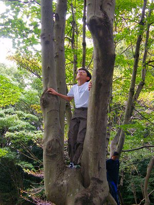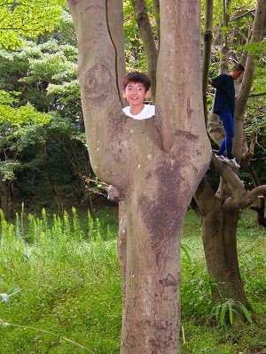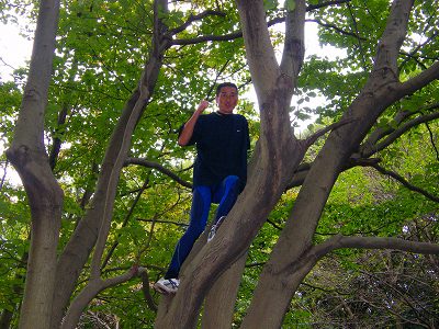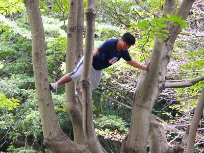 写真 上半身とボティーバランスのトレーニングに最適な木登りが初めての知◎選手は頑張りました。