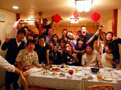 小さいけど、とても美味しい店を貸し切り、定員以上の方のご参加を頂き、盛り上がっている風景です。