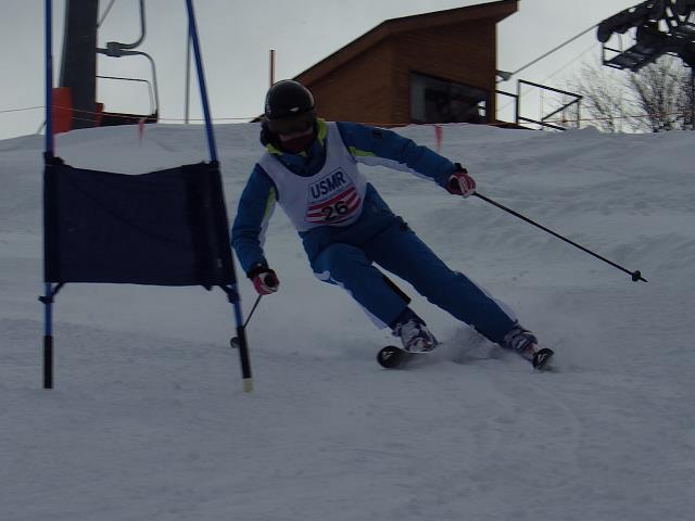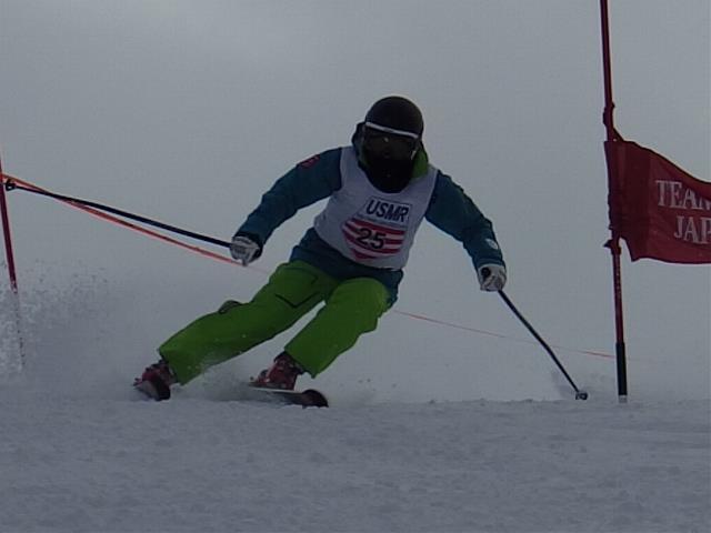 その後SLでは「頭を内に!」という指示に切り替えらました。その時、逆手が以前より自然にできました。次の滑りでは「おーっ、みんなこんな視野で滑ってんだ!」と気付きました。迫って来る目前のポール避けよう!ではなく、その次のポールを自然に見ている自分に気付きました。ゴールしたら新しい感覚が掴めて「あーうれしい!」という言葉しか出て来ず何も言えませんでした。「野口さんと間違えたと言うことは上手くなってんだね」と言っていただきました。それで、この感覚で良いらしいと確信し次の滑りでもっと積極性を出そうと滑りました。なんと次のゲートへのコースまで良く見えて、GSのコース跡とクロスして飛ばされそうな所も慌てず対応できるではありませんか。SLの大会に出る機会はほぼ無いし、不得意だけど練習プログラムにあるからと消極的に参加をしていましたが、やって来て良かった…と思いました。傍目にはどうなのかわかりませんが私には今日はビッグチェンジの日です。