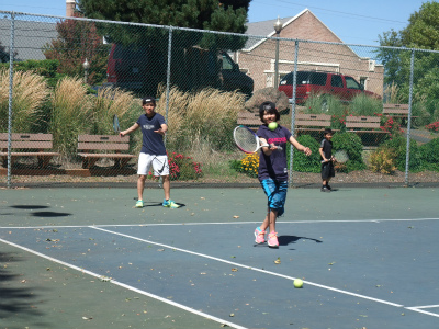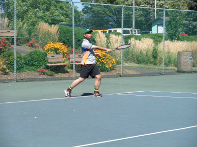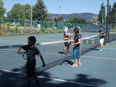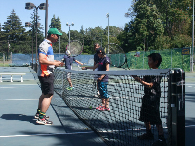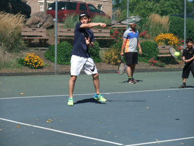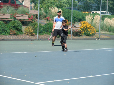 8/6 スキーに役立つ膝の絞りを学べるテニス練習を全員でしました。初めてなのに、USMR式指導法で楽しくダブルスの試合まで出来ました。