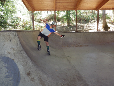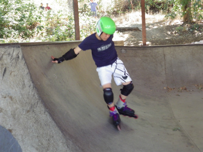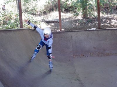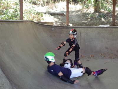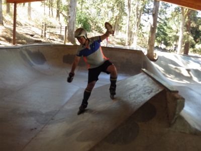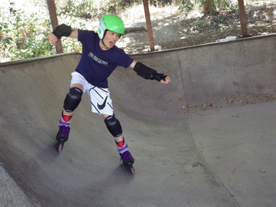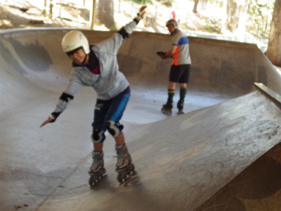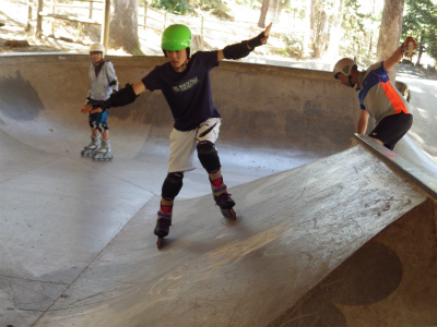 インラインスケートパークにて、斜面のでのレベルを学んでいます。遊びながらスキーを上達させます。おっと危ない!でも基本のレベルが出来ると・・・・・・・・転ばない!