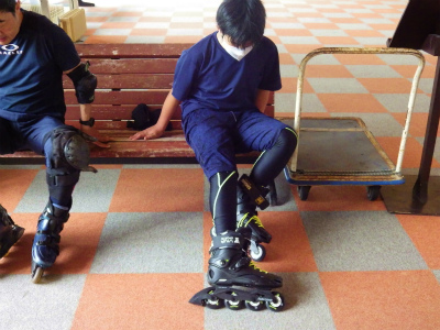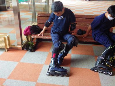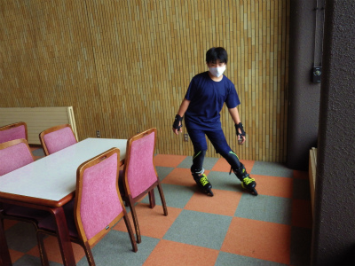 内スキー練習中