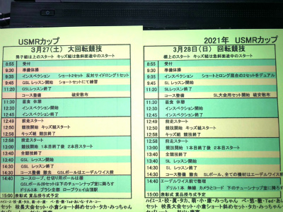 USMRカップ 3/27(土)GSL 28(日)SL タイムスケジュール